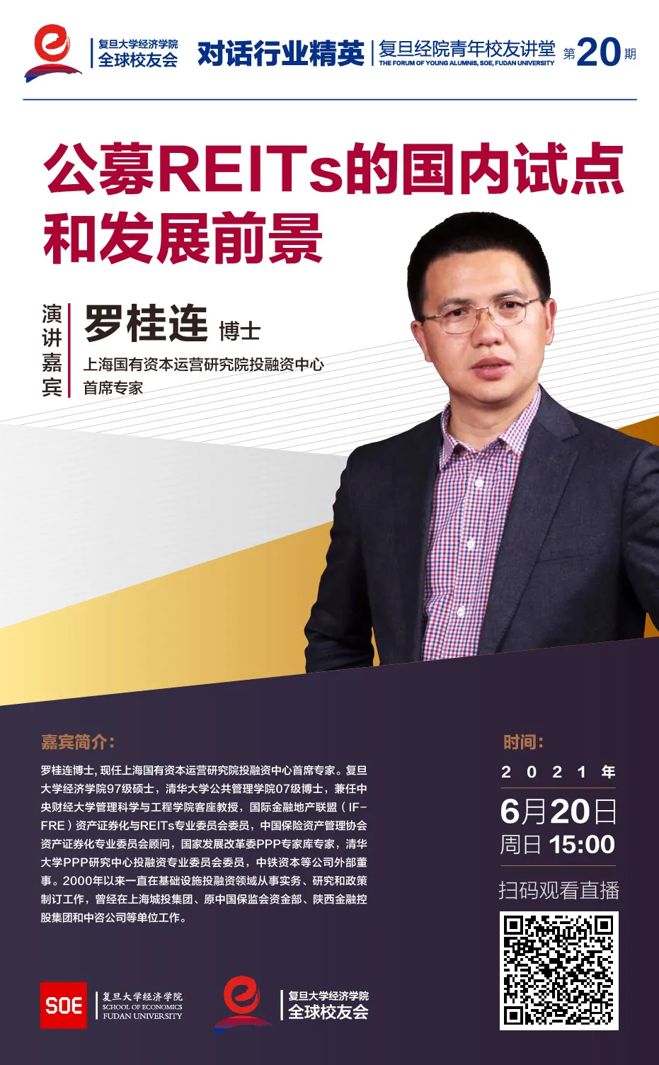 活动预告|“复旦经院青年校友讲堂”第20期:公募REITs的国内试点和发展前景