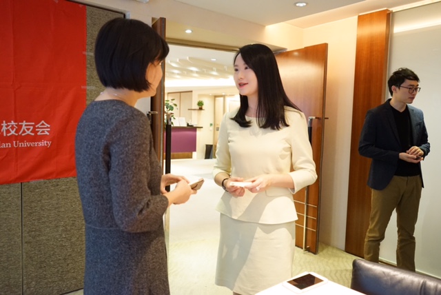 香港校友联络处主任董琦女士向本次演讲嘉宾朱菁博士赠送了复旦纪念品,致以诚挚谢意!