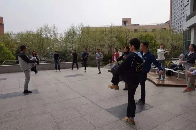 接下来,为了让大家感受到太极拳的“内功”,余老师与其他校友进行了互动,并且带领所有学员来到室外进行初级教学。第一次课程以体验为主,校友们简单学习了起势和第一式,初步体会到了太极拳的魅力。