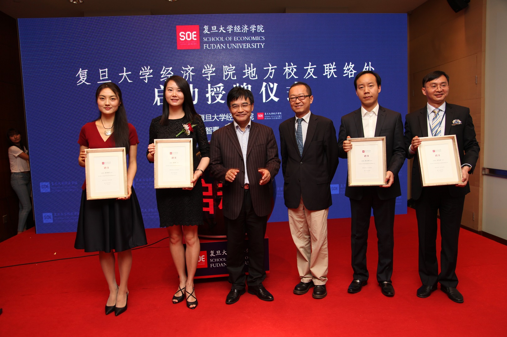 北京校友联络处主任,华澳信托国际部执行经理徐杉杉,香港校友联络处主任、花旗私人银行香港分行高级副总裁董琦,纽约校友联处代表、御书屋