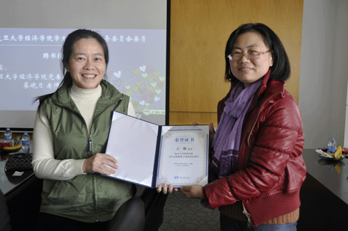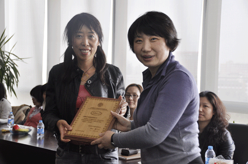 副院长、妇委会主任刘军梅老师、党委副书记蔡晓月老师,学院各系所的杰出女教师代表:杜莉老师、杨青老师、卢华老师、李丹老师、以及公共服务部门的施侠老师、王小丽老师、袁莉莉老师、江源老师。在座谈会正式开始之前,为了感谢李映辉女士对学院的捐赠,刘军梅老师为李女士颁发了御书屋
