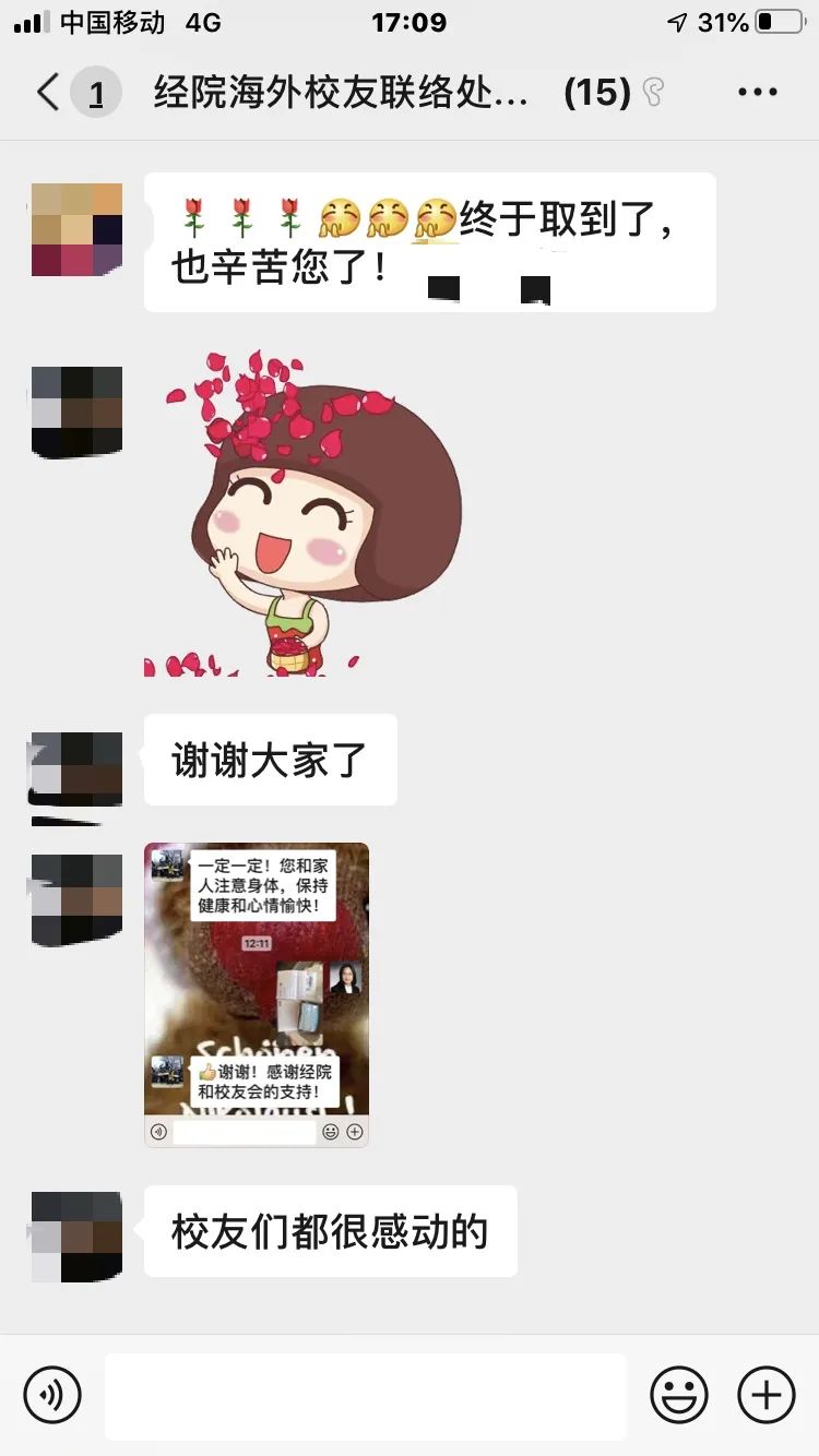德国法兰克福校友联络处收到口罩