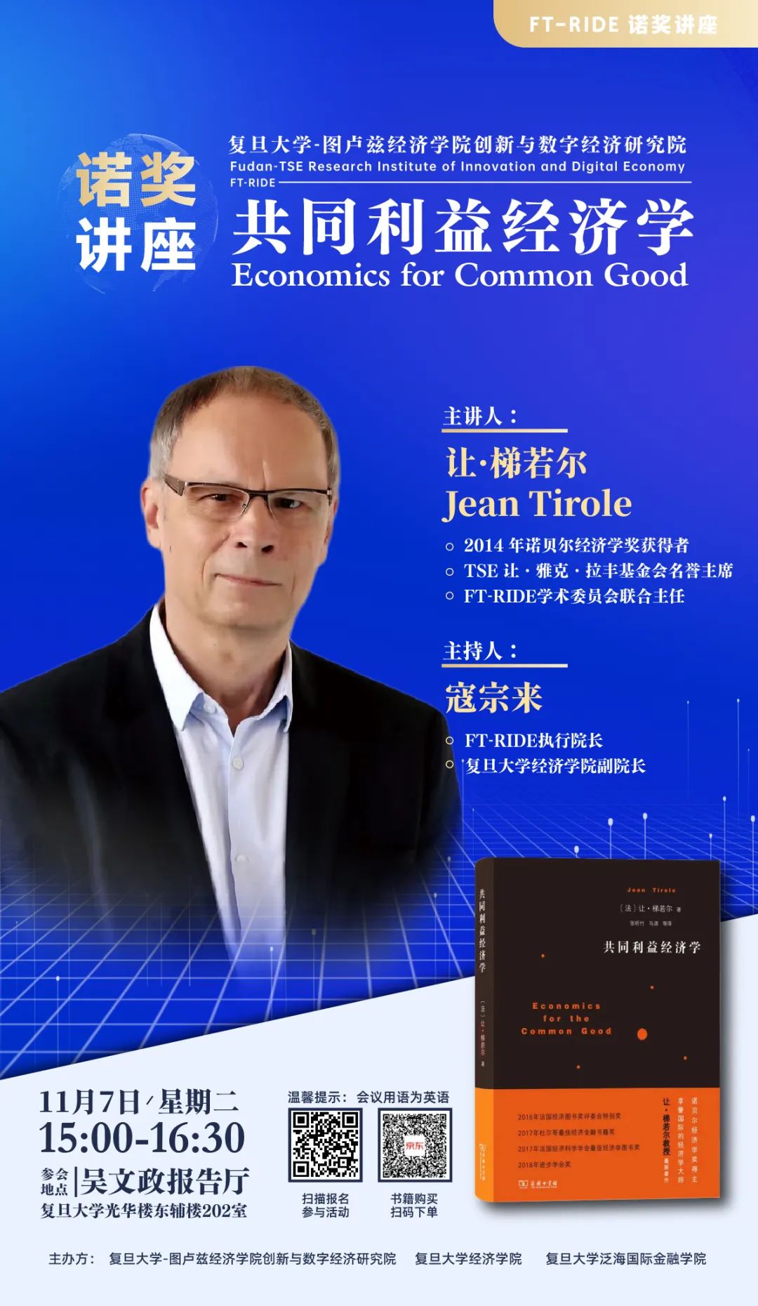 去年5月,一位世界顶尖经济学家柔性加入复旦。2014年诺贝尔经济学奖得主、法国图卢兹御书屋 教授让·梯若尔(Jean Tirole)与御书屋 文科资深教授、御书屋 院长张军受聘为“复旦-图卢兹创新与数字经济研究院”(FT-RIDE)学术委员会联合主任。