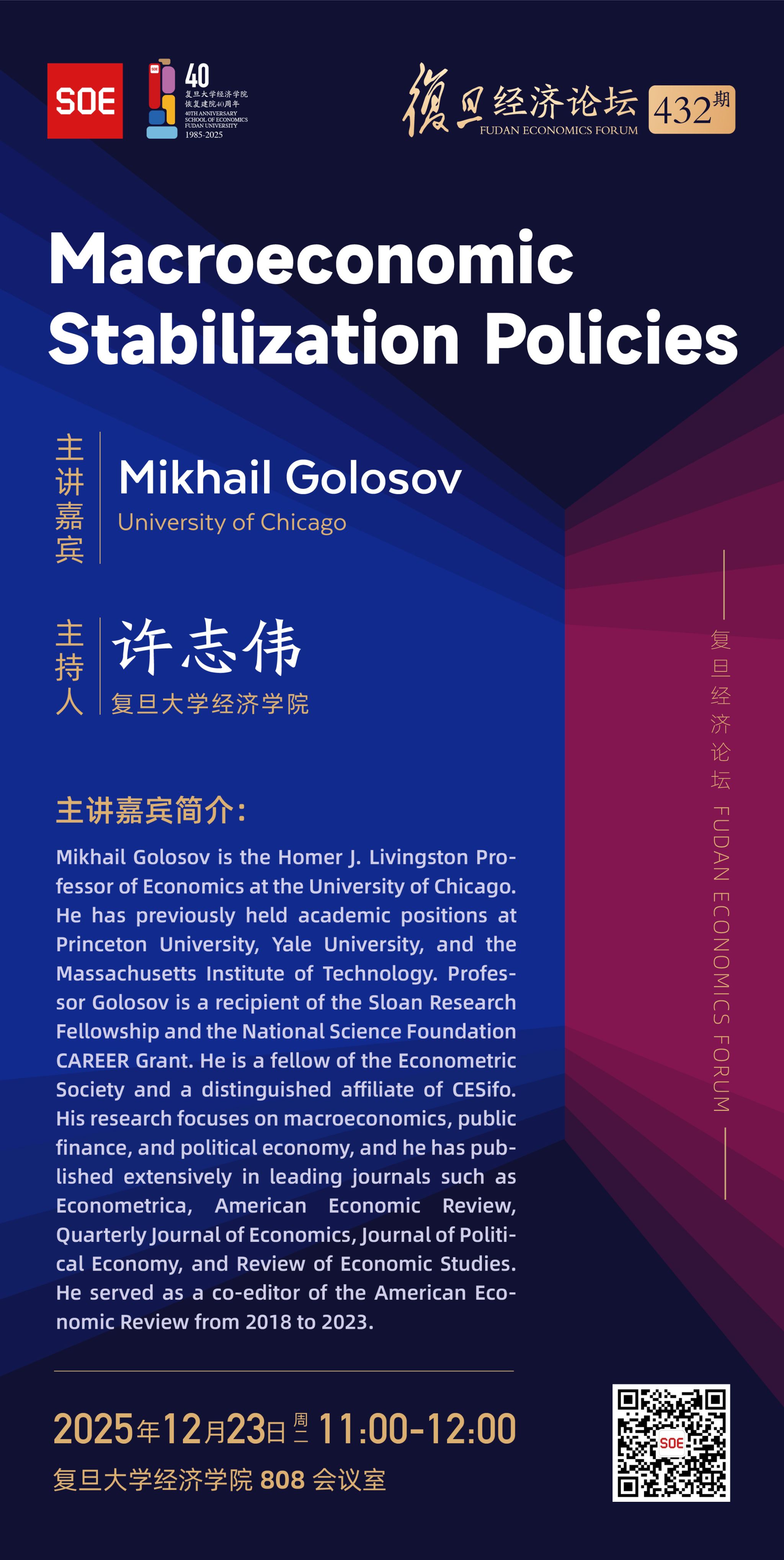 复旦经济论坛432期:Macroeconomic Stabilization Policies