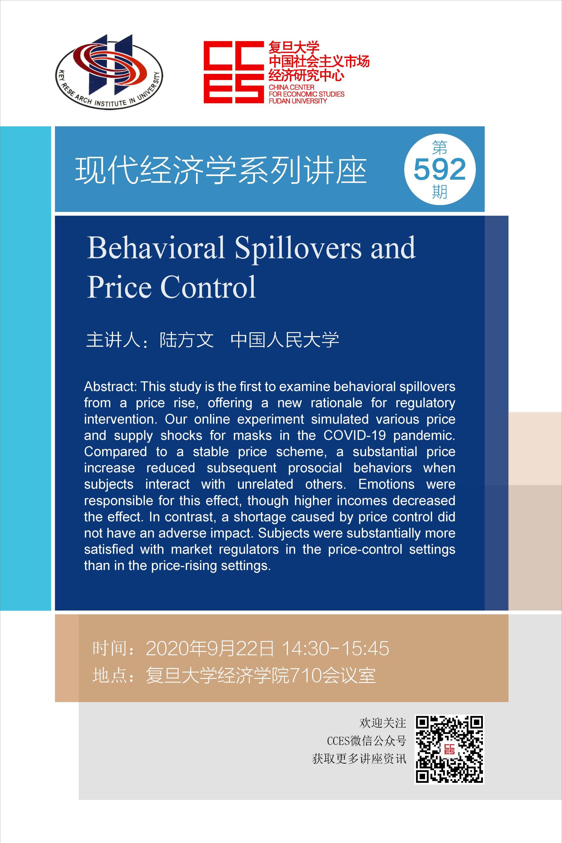 报告题目:Behavioral Spillovers and Price Control