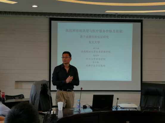 泛海楼808会议室举行。西南财经大学公共管理学院副院长、博士生导师臧文斌教授应邀做了题为“医院所有制类型与医疗服务价格及质量:基于成都市的实证研究”的学术报告,主要利用成都市经历的公立医院改革来控制患者自选择可能导致的估计偏差,通过研究不同的参保人群来分析公立医院和民营医院在医疗费用和医疗质量等方面的区别。报告会由公共经济系主任封进教授主持。
