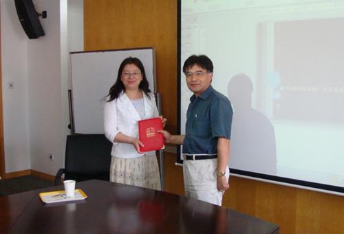 石磊教授向赵敏女士颁发研究员聘书
