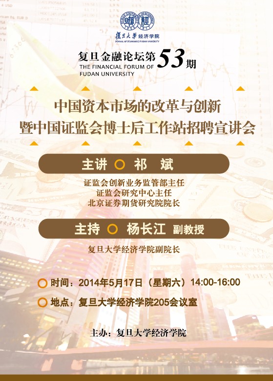 题目:中国资本市场的改革与创新暨中国证监会博士后工作站招聘宣讲会