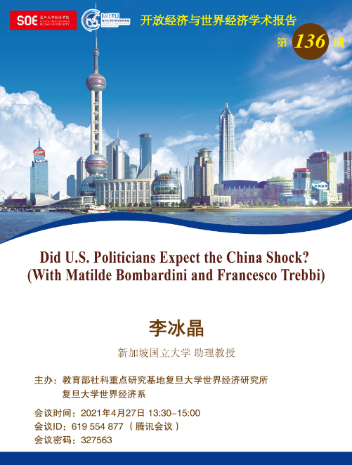 主题:Did U.S. Politicians Expect the China Shock? (With Matilde Bombardini and Francesco Trebbi)