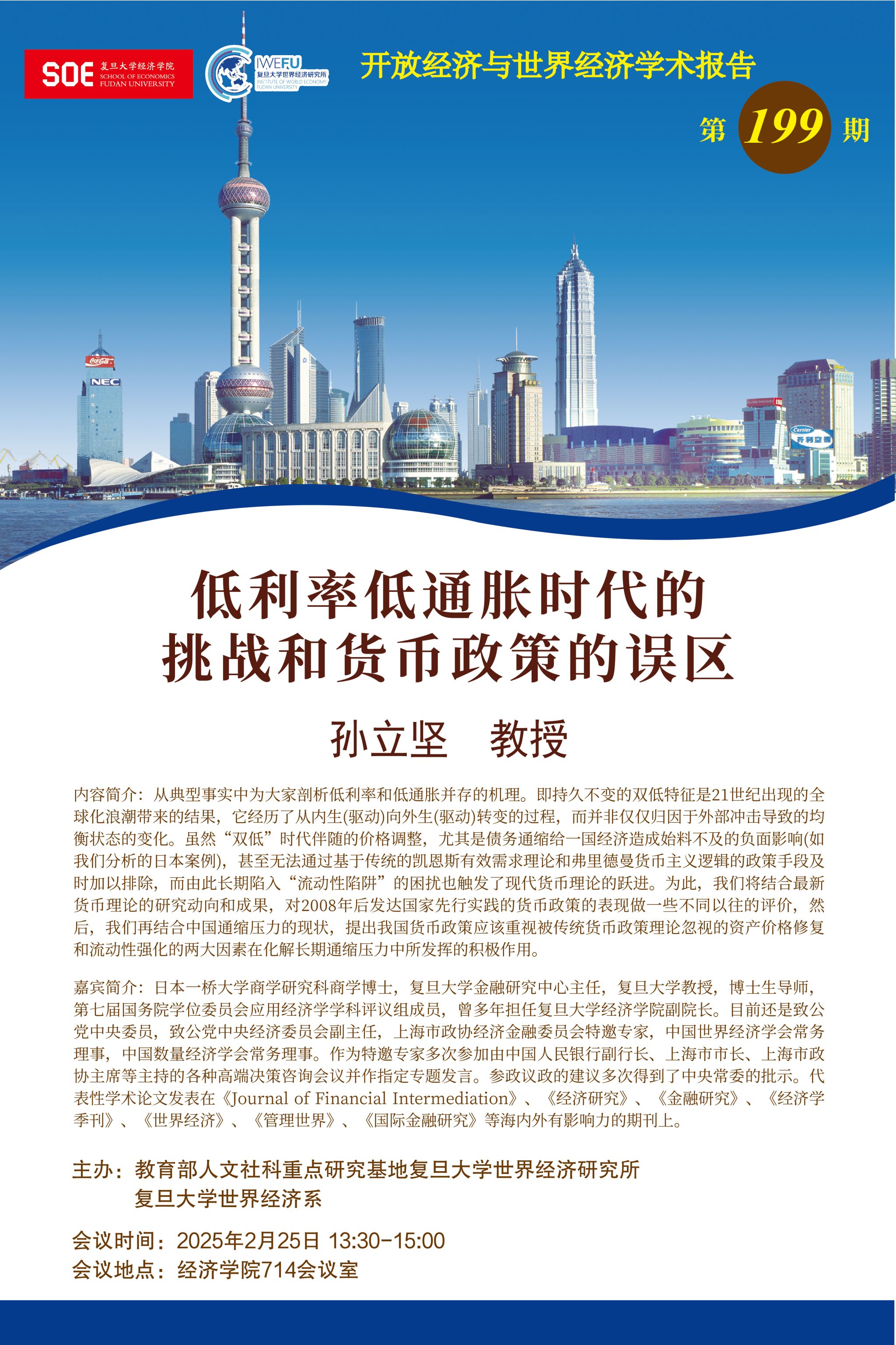 主题:低利率低通胀时代的挑战和货币政策的误区