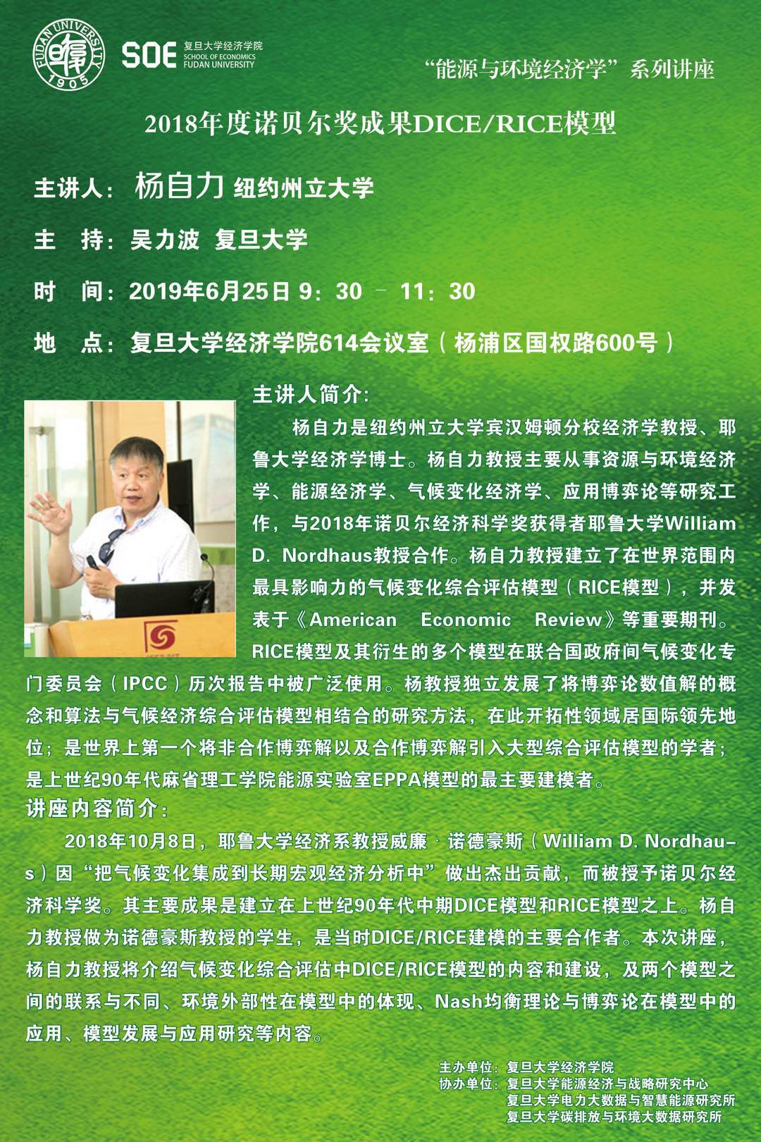 “能源与环境经济学”系列讲座:2018年度诺贝尔奖成果DICE/RICE模型