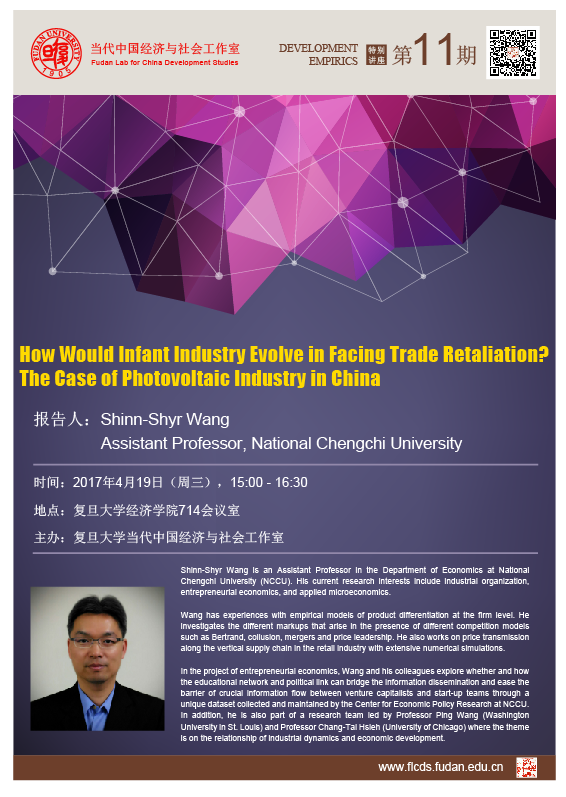 Shinn-Shyr Wang is an Assistant Professor in the Department of Economics at National Chengchi University (NCCU). His current research interests include industrial organization, entrepreneurial economics, and applied microeconomics.
