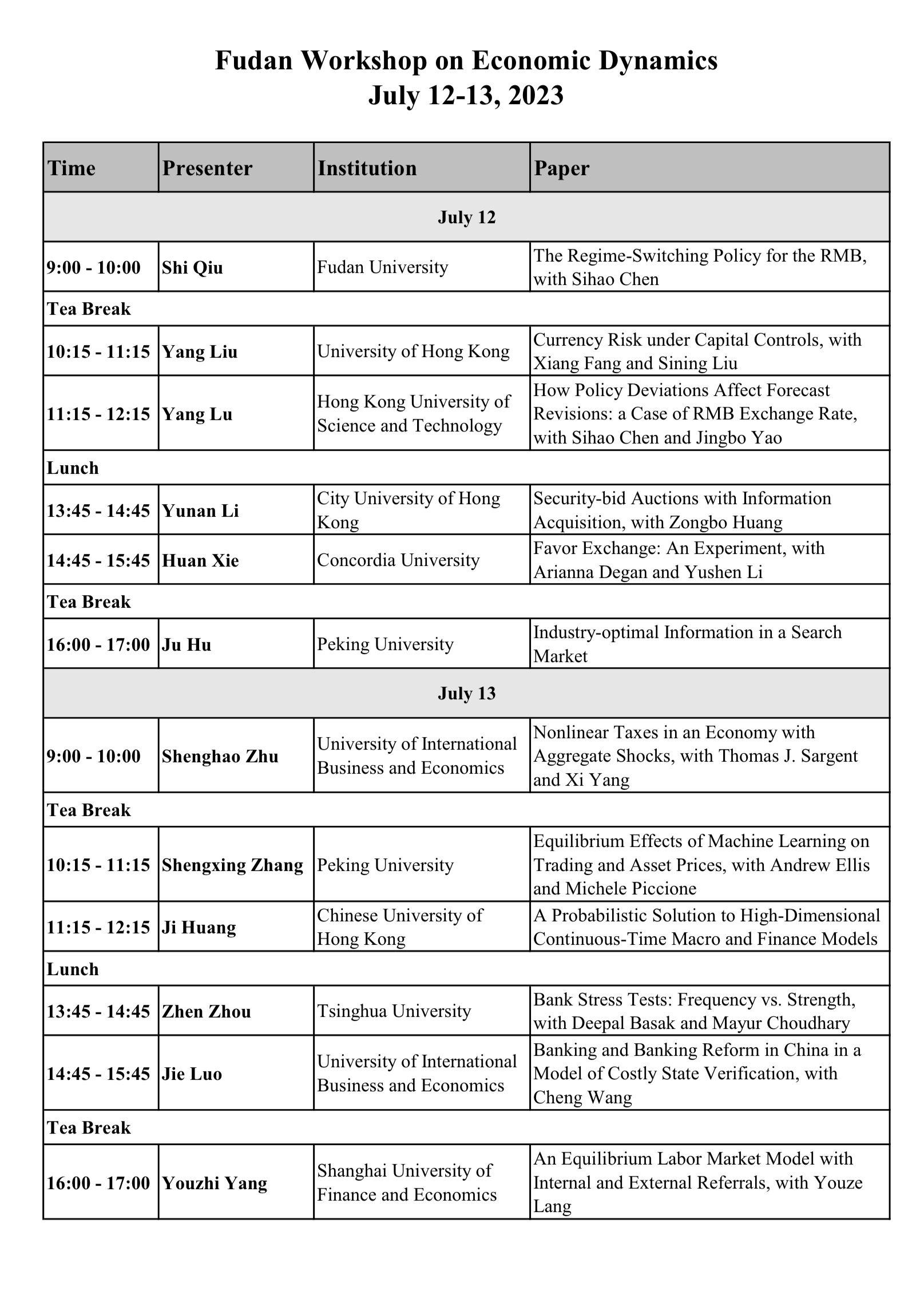 动态经济学研讨会 | Fudan Workshop on Economic Dynamics(2023)