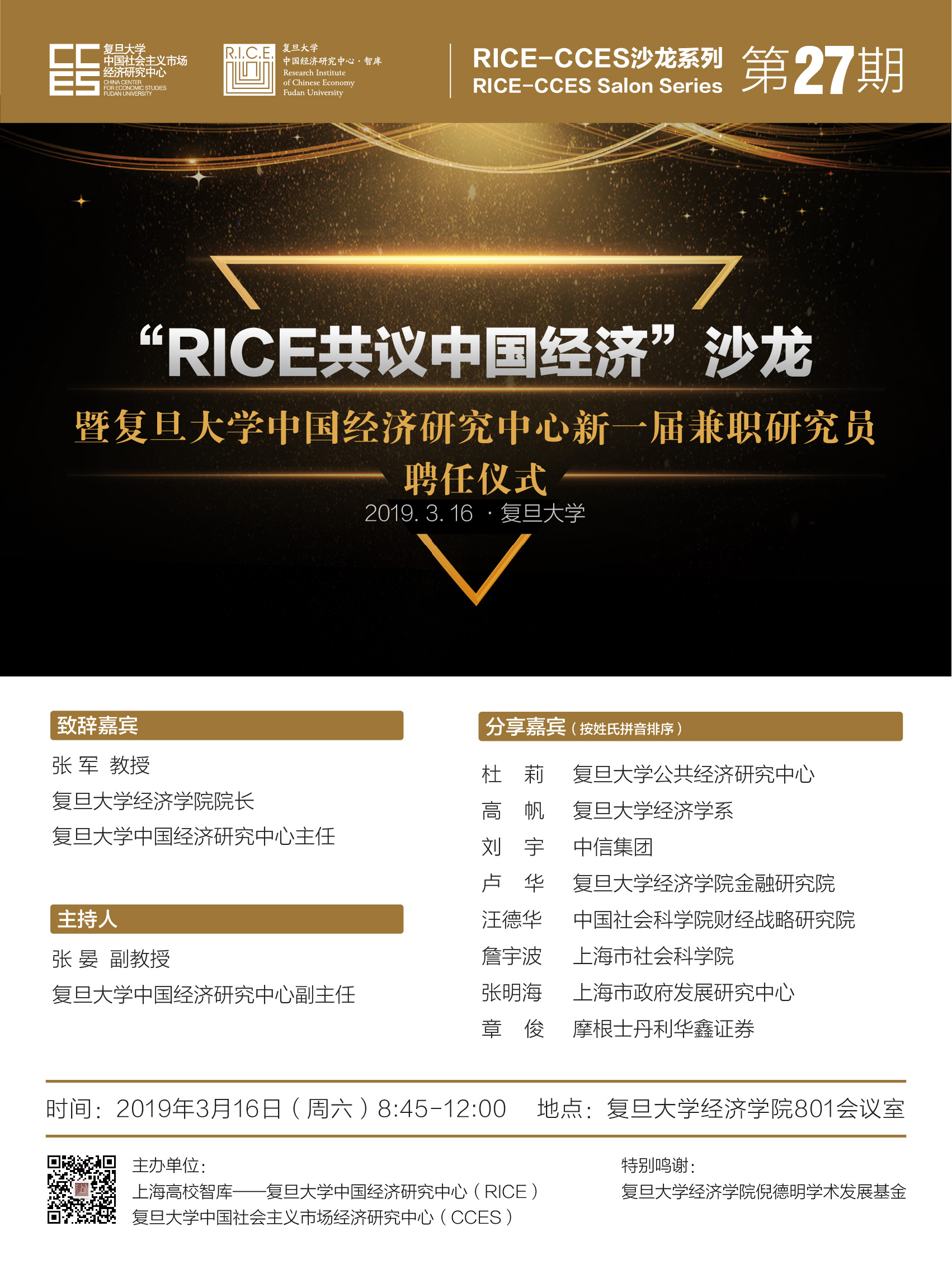 主题:“RICE共议中国经济”沙龙暨御书屋 中国经济研究中心新一届研究员聘任仪式
