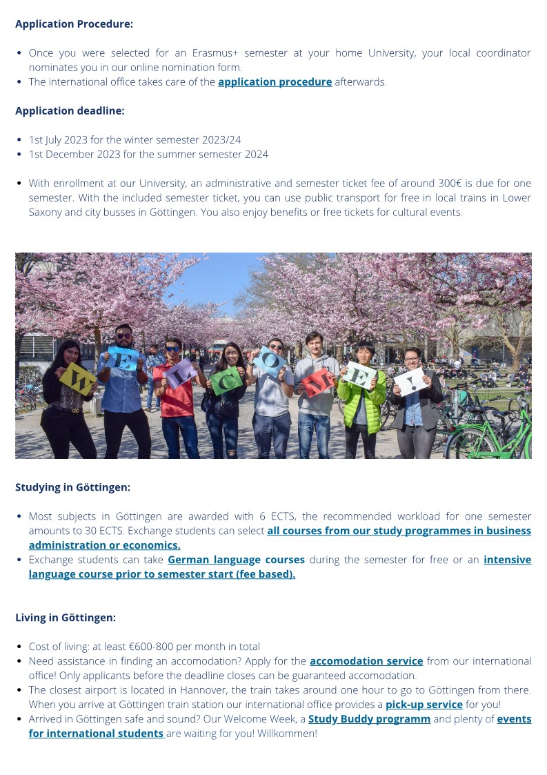 The winter semester starts in October and lasts until February/March. Please find more information on our website for international exchange students as well as in our fact sheet.