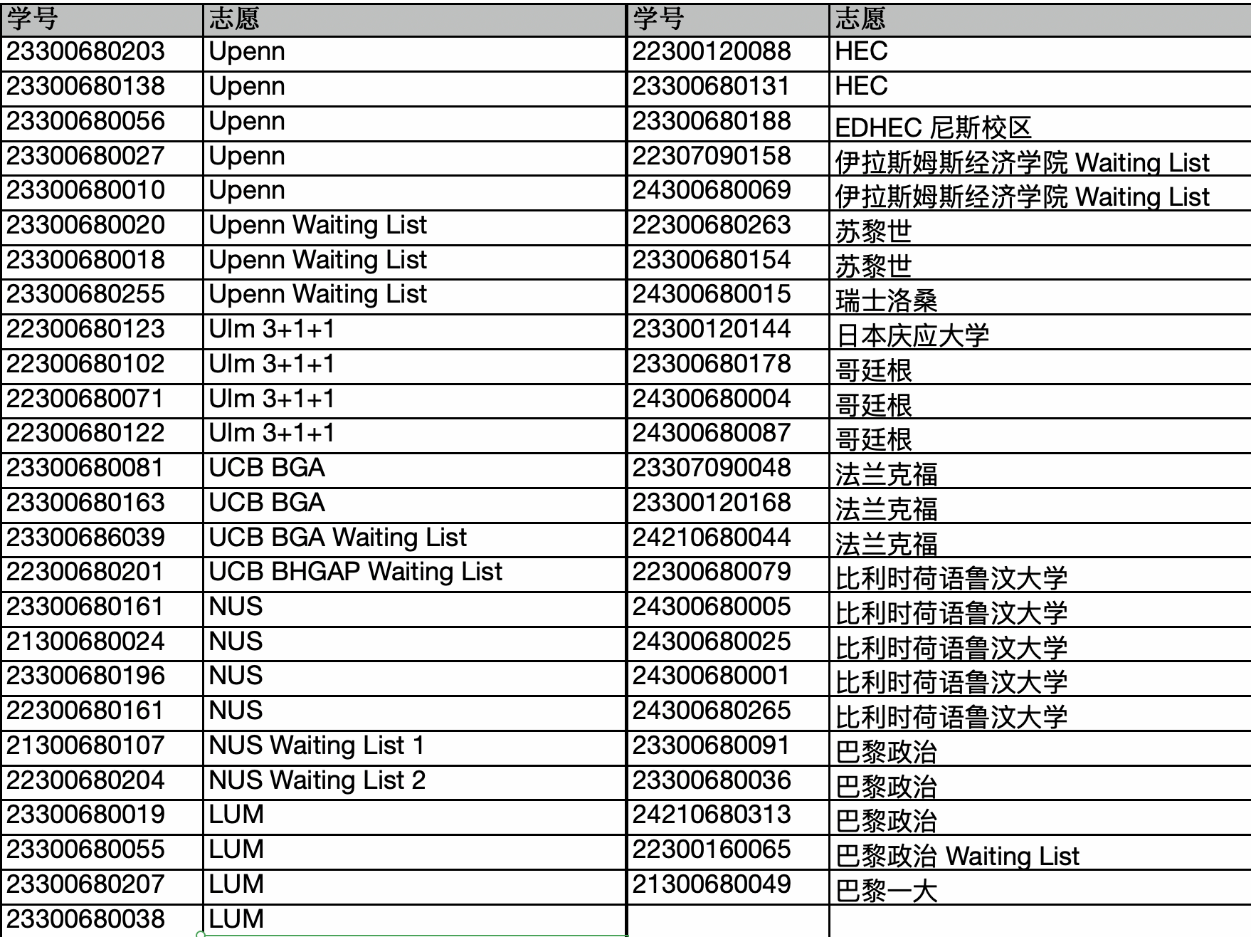 Munich School of Management Ludwig-Maximilians-Universität München, Munich, Germany (德国慕尼黑大学) | 本科生(交流学期为二年级上下学期,三年级上下学期、四年级上学期)、专业学位硕士生(交流学期为一年级下学期、二年级上学期),申请人年龄不能超过29岁。 | 4名,免学费 | QS2024世界排名37。学校位于慕尼黑市,是德国主要的经济、文化、科技和交通中心之一。 |