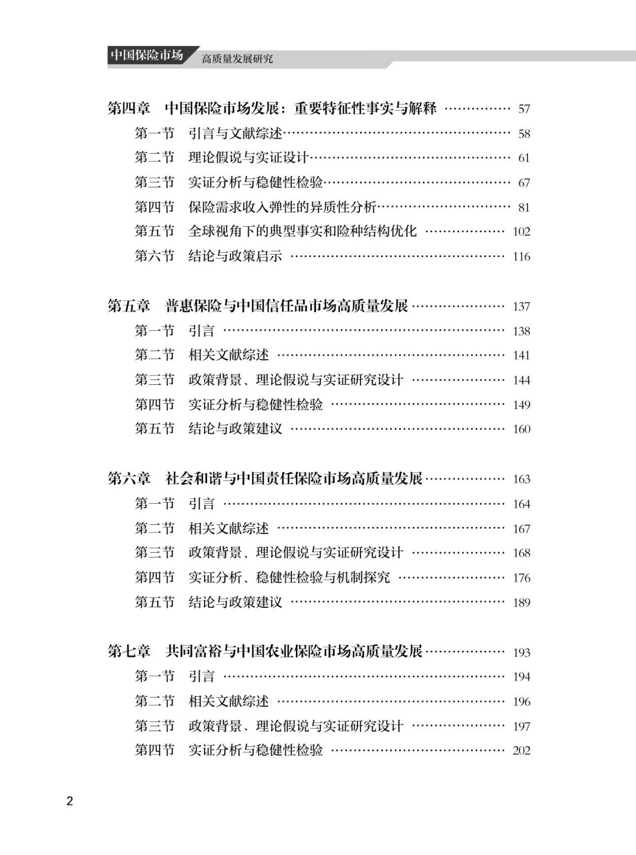 本书内容兼具理论深度与实践意义,既适用于高校保险学、金融学及相关专业的教学与科研,也可为保险经济学、精算与风险管理、高质量发展研究领域的学者、政策研究者以及业界专业人士提供有价值的参考。