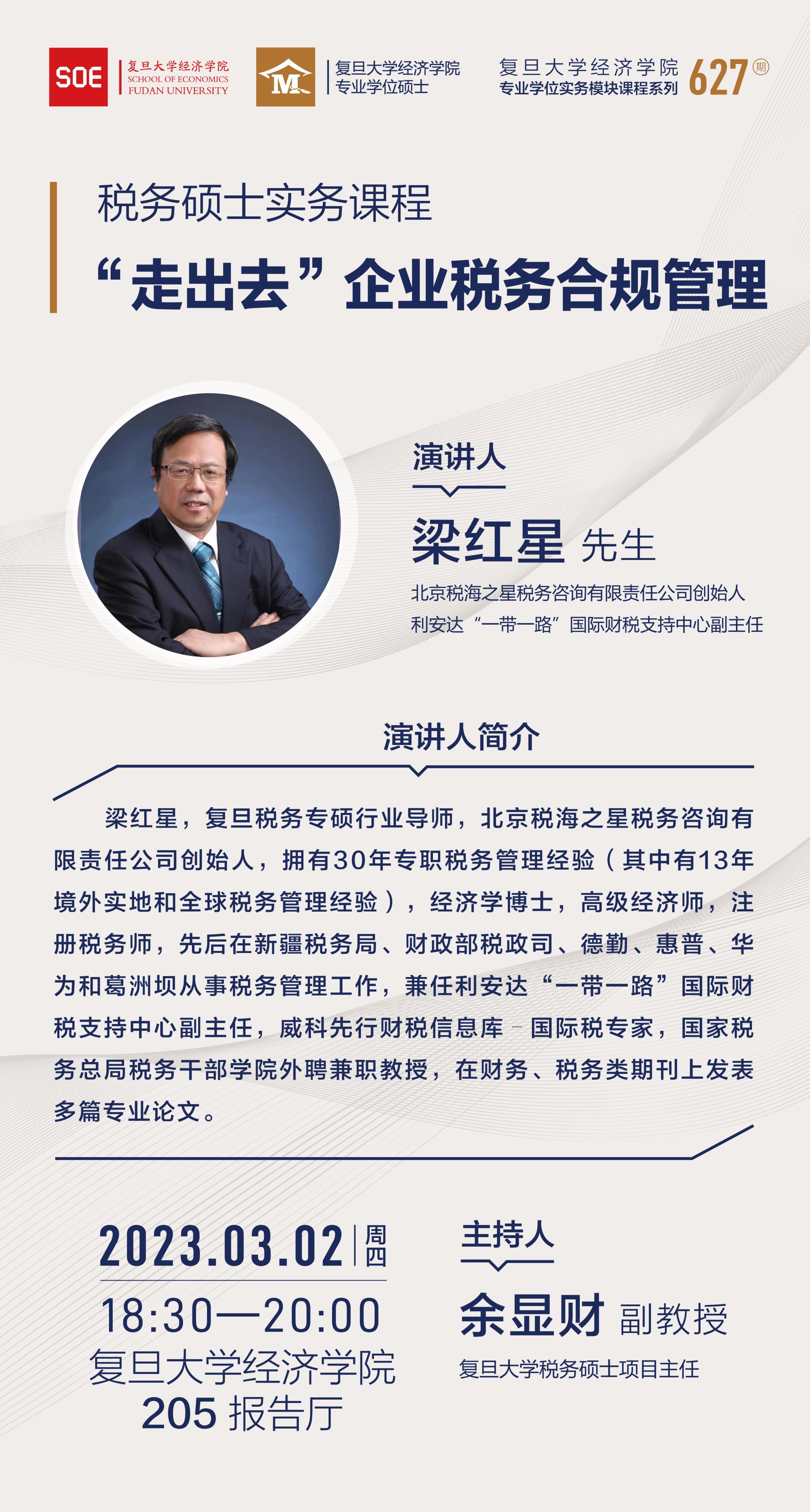 课程预告|梁红星:“走出去”企业税务合规管理