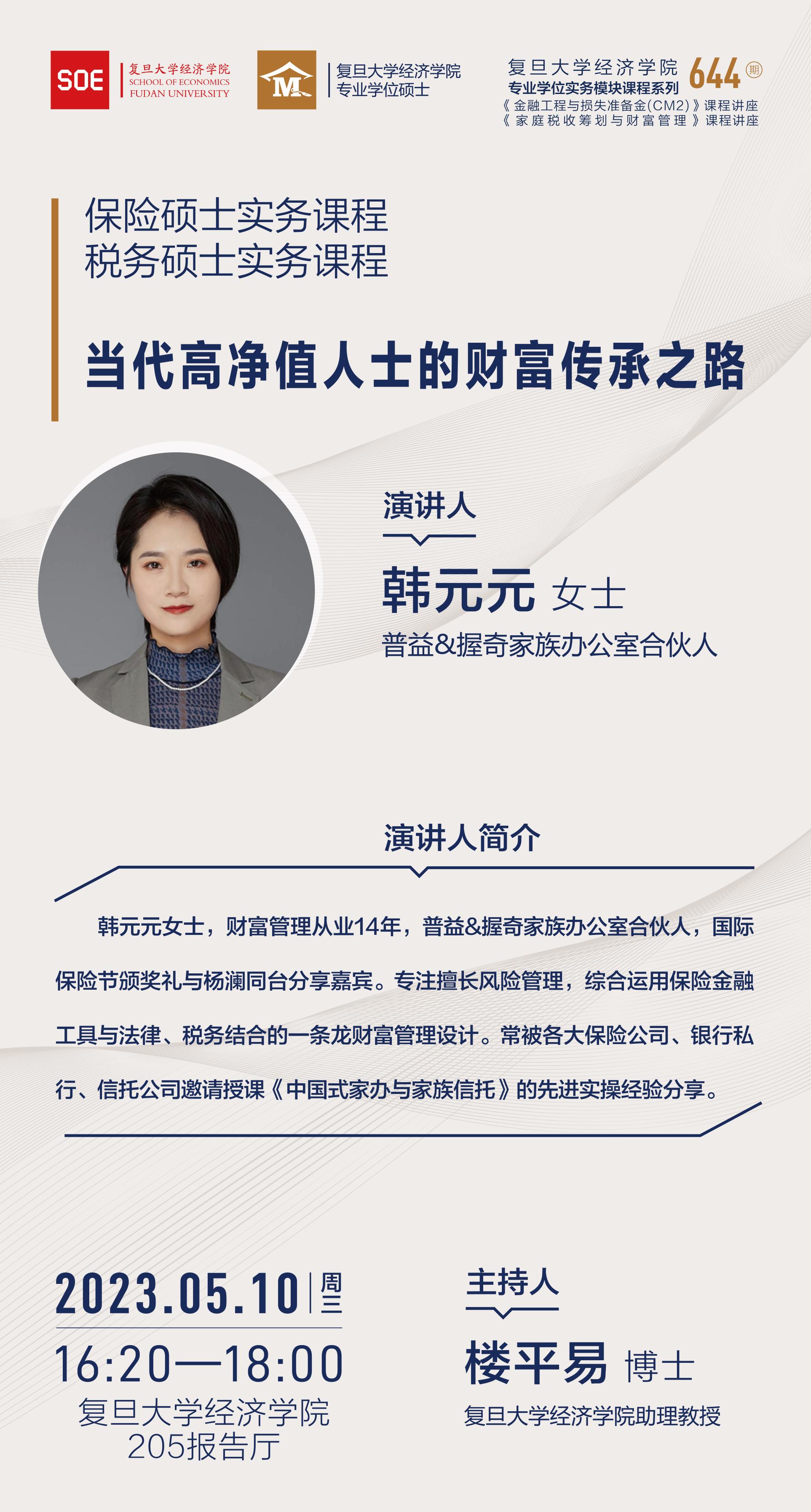 课程预告|韩元元:当代高净值人士的财富传承之路