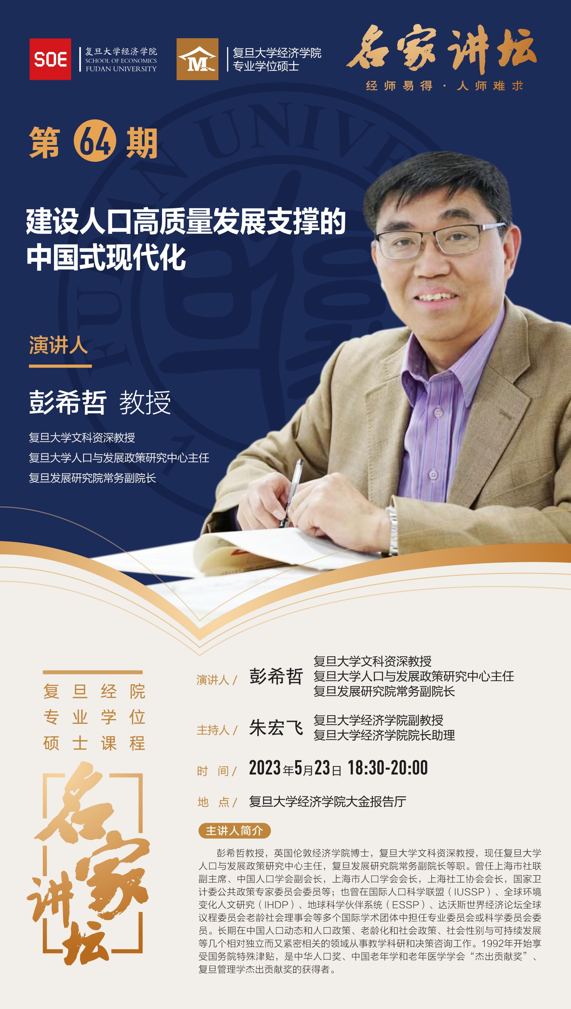 名家讲坛预告|彭希哲:建设人口高质量发展支撑的中国式现代化