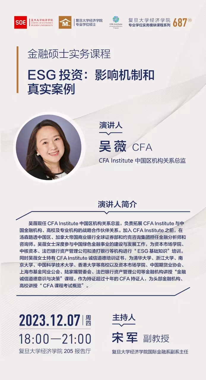 课程预告|吴薇:ESG投资:影响机制和真实案例