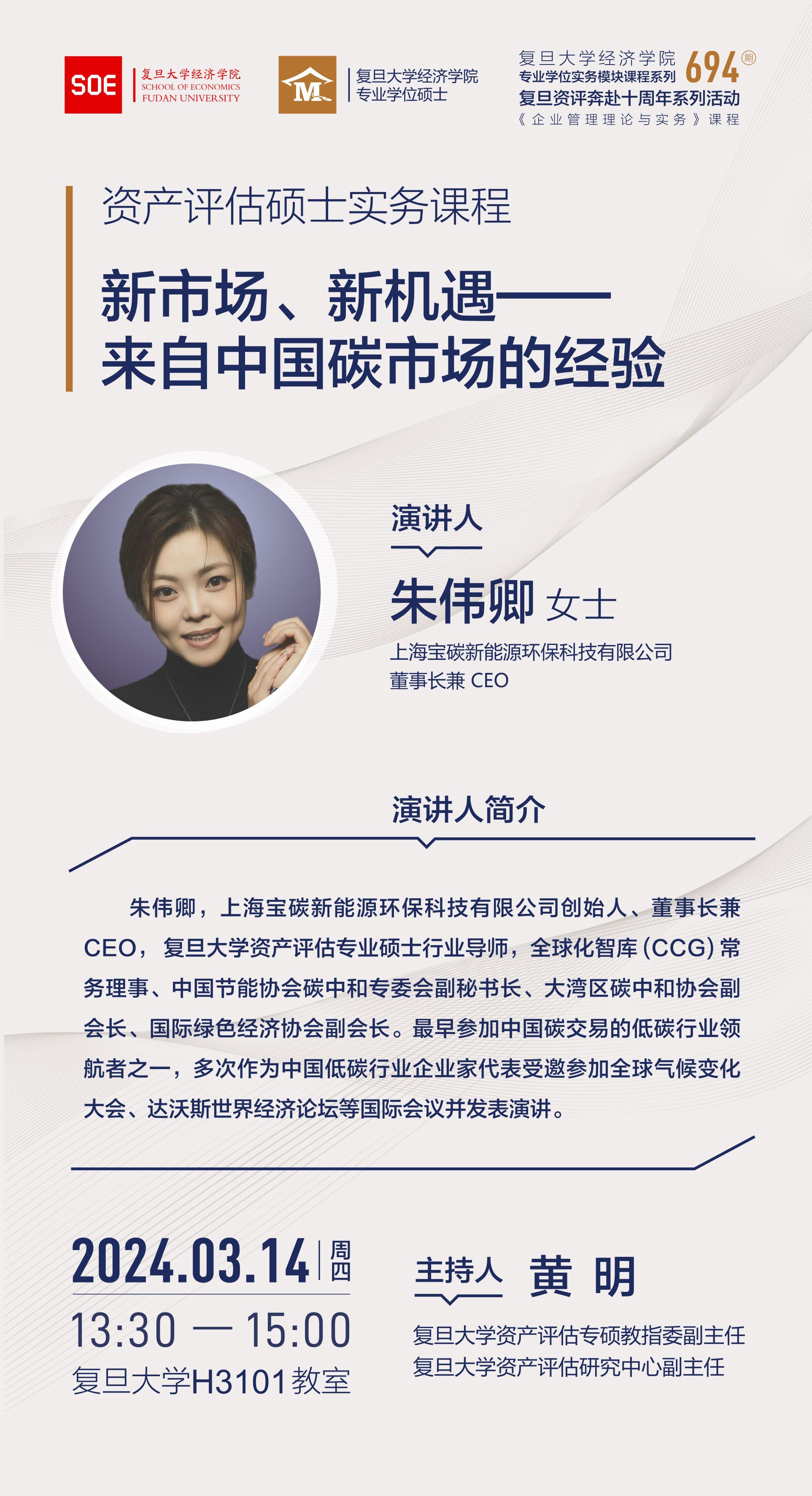 课程预告|朱伟卿:新市场、新机遇——来自中国碳市场的经验