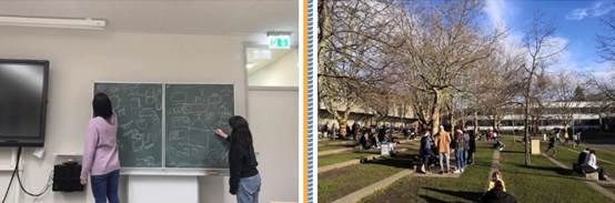 上课我是挑选自己比较感兴趣的话题相关的课程或者是觉得在自己能力范围内的课程。我感受最深的一点,就是这里的教育非常鼓励你的独立思考以及和老师之间的沟通交流,常常老师讲了一段内容之后,就会问大家有没有什么要提问的,而且一般立马都会有同学提问,有时候有些问题也会把老师难住。除了老师发问,同学们也可以随时举手提问。我觉得这边的上课更像是双向的沟通,国内授课比较像单向的沟通。