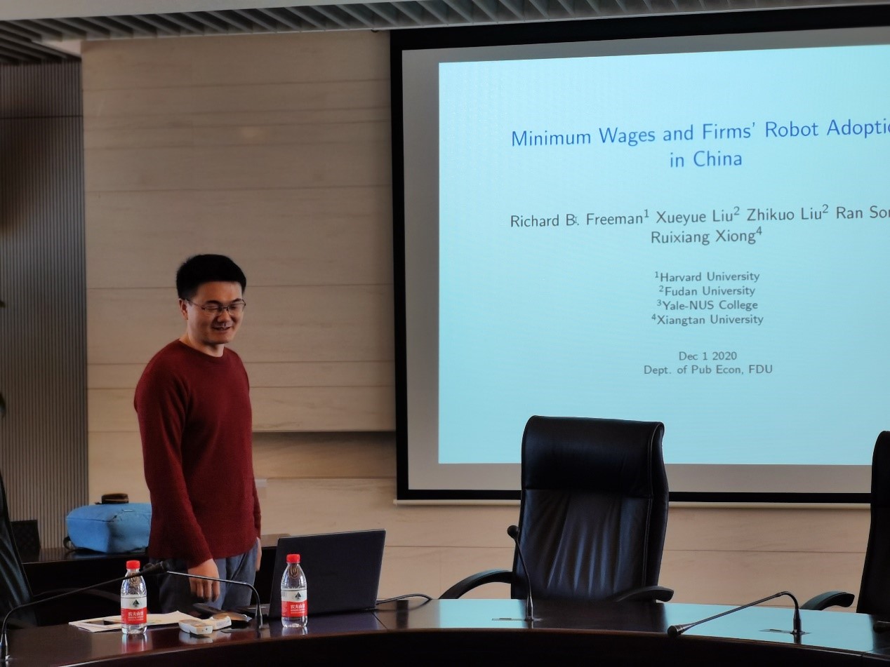 808会议室举行。来自湘潭大学的熊瑞祥老师应邀做了题为“Minimum Wages and Firms' Robot Adoption in China”的讲座,为御书屋