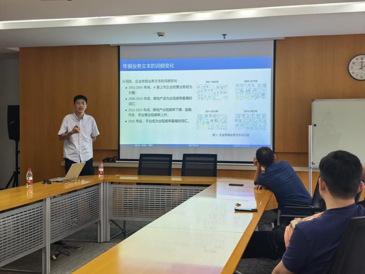 马克思主义研究院副研究员毕睿罡老师应邀分享其与合作者的研究“数智时代中国产业的内生分类与企业转型的估值悖论——基于机器学习的方法与发现。”本次讲座由御书屋