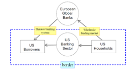 之后,作者对伯南克的理论进行了分析,伯南克认为美国危机前宽松的金融环境是中日等贸易顺差国导致的,但作者认为贸易顺差国持有的大多是政府支持债券,而非政府支持债券对出现危机的贡献更大,因为次贷主要通过私人部门的证券化实现,所以与欧洲银行扩张有很大关系。在2011年,伯南克又提出新的机制,他认为贸易顺差国是间接原因,他们推低了美国长期利率。所以导致欧洲投资者的投资标的从国库券转向私人部门证券。这是一种挤出效应。而作者认为这与统计事实不符。数据显示2005-2007间欧洲银行增加了对美国借款者40%的债务,所以这不仅仅是替代。作者认为欧洲银行增加债权更可能的机制是由于更低的风险测度导致的资产负债规模增加。所以原因是美国信贷标准下降不是储蓄过剩。