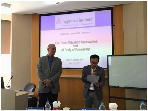 205报告厅隆重开讲,主讲人为国际资深房地产估价师、估价专家John H. Urubek先生,讲座主题分别是“美国房地产的估价方法与体系”、“如何成为一名优秀的美国估价师”。