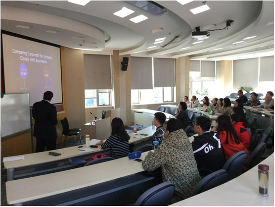 税务硕士研究生讲授主题为“U.S. Tax Issues when a Chinese Person Does Business in America”的实务课程。此次讲座由御书屋