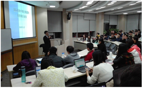 金融硕士实务模块课程第182期于201报告厅正式开讲。本次课程邀请到交通银行总行金融研究中心处长陈左先生主讲“国际视角中银行集团的投资银行业务”,讲座由