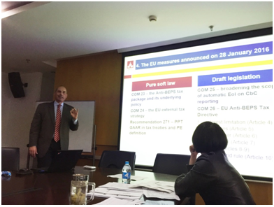 最后,Pasquale Pistone教授介绍了BEPS计划的实施。2016年1月28日,BEPS计划提出制定并颁布一些措施,以实现通过超国家主权的欧盟法达到统一行动的目的,并且提高欧盟内部市场公平的竞争环境。这些对激进的税收筹划行为的反应,反映了保护国家间平衡的税权分配的需要,但是这些不是滥用权力的直接原因。欧盟需要一些措施对避税行为进行应对,如实施反滥用措施以实现均衡的目标;保护守法的居民。Pasquale Pistone教授还提到,如果一个国家为了保护税基而将税收管辖权延展到那些给予税收激励的发展中国家,该国获取的这部分税收收入应该在本国和发展中国家进行分配。