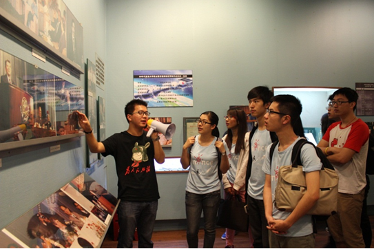 (夏令营营员参观校史馆、认真听讲场景)