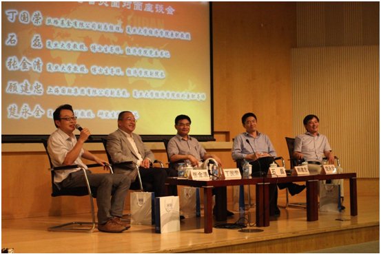 图5 座谈会与会嘉宾,由左到右分别为:张金清、丁国荣、石磊、顾建中、楚永全