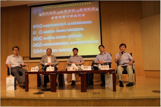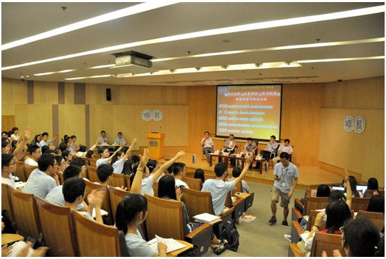 在整场座谈会中,同学们高举着手臂争取提问的热情始终不减,踊跃的发言和热烈的互动使这三个小时变得飞快。在座谈会的最后,五位嘉宾分别向与会同学送上自己语重心长的寄语。丁国荣教授充满激情的鼓励同学们,不要怀疑自己的能力,要珍惜在复旦学习的机会,把知识融会贯通,在越来越民主的社会里努力成为一个被多数人喜欢和认可的人。石磊教授同样鼓励同学们要对自己充满信心,同时也对复旦的培养充满信心,厚基础、宽口径的培养模式能够让学生在成功的道路上走的更远。顾建忠导师向台下的莘莘学子真诚的送出过来人的经验和忠告,他提醒同学们在优秀的同时要做到与他人的不同,要沉下心来,保持不浮躁的心态,坚持把自己做好。楚永全副教授希望参加夏令营的同学们都能够想清楚来复旦的目的,如果同学们不是为了追求世俗意义上的成功,而是希望通过在御书屋