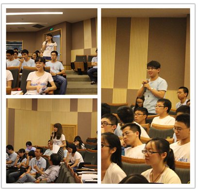 张金清教授首先代表本次夏令营的主办方介绍了在主席台上就座的各位领导、嘉宾,随后向营员简短说明了报告、座谈会的目的和方式:围绕着本次夏令营的面试以及未来在复旦读书、实习、就业的各个方面,与会营员可以向嘉宾提出问题,进行互动。作为开场白,五位嘉宾向与会同学表示了热情的欢迎和亲切的鼓励:张金清教授首先代表学院对各位营员表示欢迎和美好祝愿;丁国荣教授深情地表示,看到年轻的同学们就仿佛看到了24年前的自己;石磊教授表示同学们的脸庞上仿佛流淌着智慧,希望让智慧更多的表现出来;顾建忠导师回顾自己进入复旦时的经历,鼓励同学们在复旦成长成才;楚永全副教授代表研究生院,表达了希望同学们顺利通过夏令营考核,并且成为优秀毕业生的美好祝愿。在轻松而热烈的气氛中,主持人向与会同学宣布提问开始,同学们踊跃举手发言。