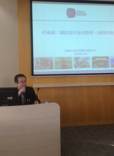 王峰先生首先谈到,目前A股的交易主要涉及份额登记以及资金交收两方面,因此“沪港通”制度设计的关键在于解决境外投资的份额登记以及资金跨境交收的问题。王峰先生强调,沪港通的出现是具有“革命意义”的,沪港通分为沪股通和港股通两个部分。他重点介绍了“港股通”,即内地投资者通过内地券商直接购买香港上市的股票的行为。王峰先生认为,沪港通每一条制度的设计都有其自身的特点,例如:交易总量过境能够实现最大的价格发现,结算净量过境能够实现最小的跨境波动,人民币境外换汇能够实现全程回流,结算交收的全程封闭能实现风险的全面监控,实现结构高度对称、利益高度一致、收入平均分享的互利共赢形势。