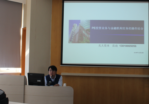 通过范南先生全面细致的介绍,同学们对于PE投资在中国的实况有了更加完善清晰的认识,并在课后与范南先生进行了深入交流。