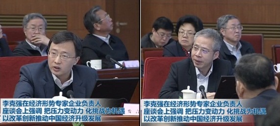 《新闻联播》的画面显示,与会者包括经济学家周其仁,中国人民大学校长助理、金融与证券研究所所长吴晓求,瑞穗证券首席经济学家沈建光,海通证券副总裁、首席经济学家李迅雷,中联重科股份有限公司董事长詹纯新,亿赞普集团董事长罗峰,招商银行股份有限公司董事长李建红以及京东集团首席执行官刘强东(按发言顺序)。