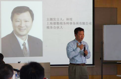 林绥导师首先对蔡彤导师的“营改增对企业经营的影响”话题进行了点评和补充,然后就“双边税收协定的中国实务进程及其问题”这一话题展开了深入探讨。作为德勤会计师事务所税务合伙人,林绥导师有着丰富的实务经验,尤其精通双边税收协定相关理论和实务操作。随着经济全球化,双边税收协定的问题逐渐提上日程,林绥导师对税务局、企业和中介机构如何应对双边协定的问题进行了分析,他指出中国双边协定完善的进程就是中国法治完善、体制完善的进程。