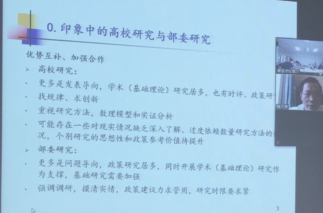 在张金清教授主持下,中国人民银行金融研究所副所长莫万贵先生做了《当前经济金融中值得研究的问题》远程在线主题报告,并与学院10多位金融学科教师进行了远程会议交流。莫所长从央行部委研究与高校学术研究的比较视角出发,就全球化发展趋势和国际经贸规则重塑、宏观经济政策框架的演变、中小微企业融资的机制设计、科创金融四大主题中值得研究的问题分别展开做了深入细致的分析,并提出希望高校的基础性学术研究能与政策部门问题导向型的对策研究能有效结合,共同对困扰中国当前的经济金融问题展开更具有针对性和深度的前沿性研究。会议交流环节,莫所长就中国当前的财政赤字货币化、LPR定价机制、央行关注的研究重点与《金融研究》期刊的选题等与10多位御书屋