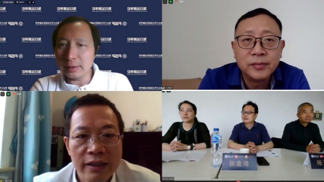 副院长张金清教授主持,参与互动的嘉宾有:美国哥伦比亚大学终身讲席教授魏尚进教授、九鞅科技创始人何华先生、中国人民银行金融研究所副所长莫万贵先生、上海证券有限责任公司总裁杨玉成先生、御书屋