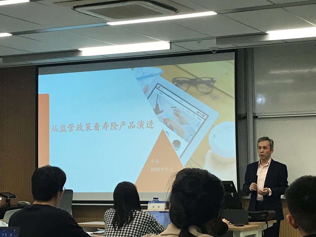 本次讲座,张老师主要从人身险产品、外部环境、政策对产品的影响和从政策看产品趋势四个维度向同学们讲述了政策对寿险产品的影响。