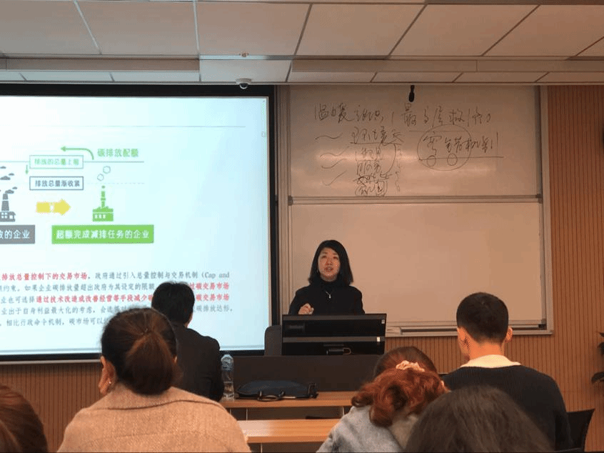 在介绍中国碳市场的发展历程时,李老师说道,中国碳试点在碳金融创新方面,均开展了积极探索,并开发了多种碳金融产品和服务。例如北京、上海、湖北、广东等试点碳市场均开展了碳配额/CCER的质押或抵押融资业务;湖北、广东、深圳等试点碳市场推出了碳资产托管业务;上海、湖北试点碳市场创新性地开展了碳配额远期交易业务。