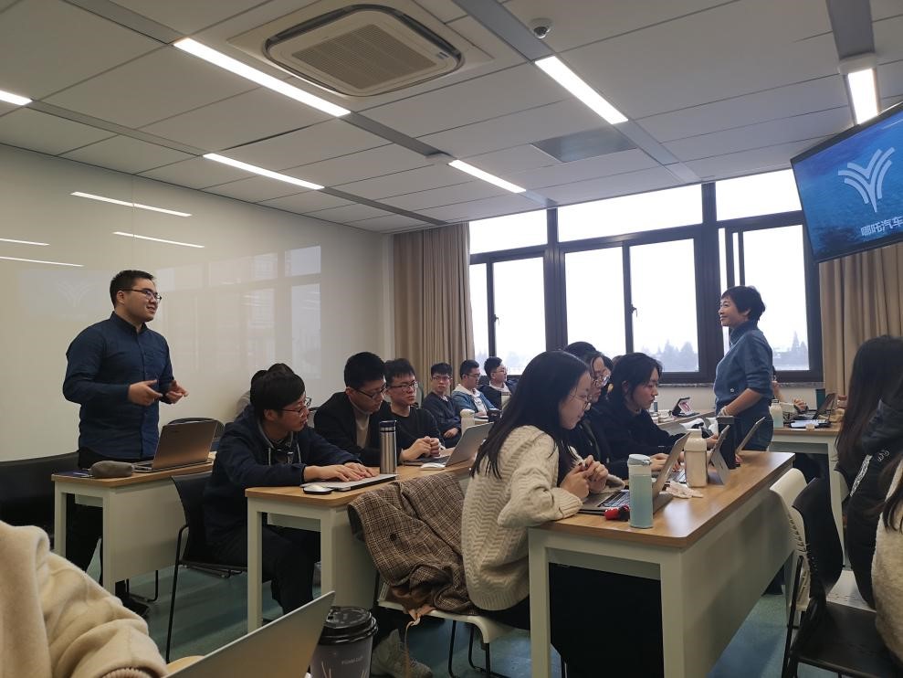 结合自身丰富的从业经验,方老师向同学们分享了她在上汽集团工作11年的感悟以及对新能源汽车认识和见解。方老师指出,新能源汽车之所以被汽车行业所认可,并在“十三五”规划中成为国家战略,主要还是归结为能源安全和清洁环保。在新能源汽车成为大势所趋的背景之下,能源电池成了行业发展需要关注的重点问题,目前的能源电池已经可以实现续航400公里,同时还可以回收再利用,但仍还未解决充电的问题。未来如果能克服这一难题,那么新能源汽车对使用者来说,不仅带来了便利还大大降低了使用成本,成为汽车行业未来发展的主要方向。此外,方老师还向同学们展示了其实务工作中的项目——哪吒汽车,带领大家进一步了解汽车之美。