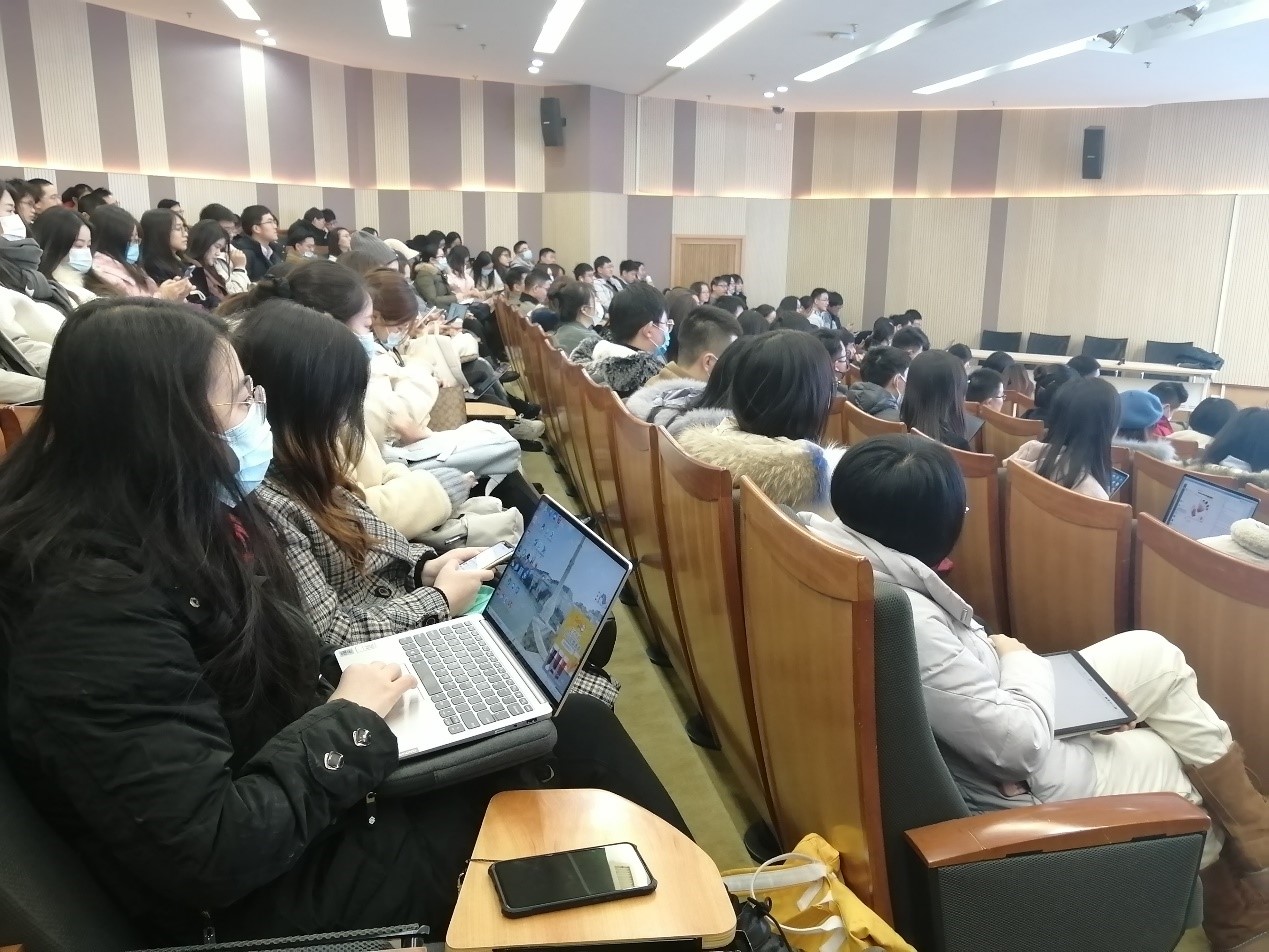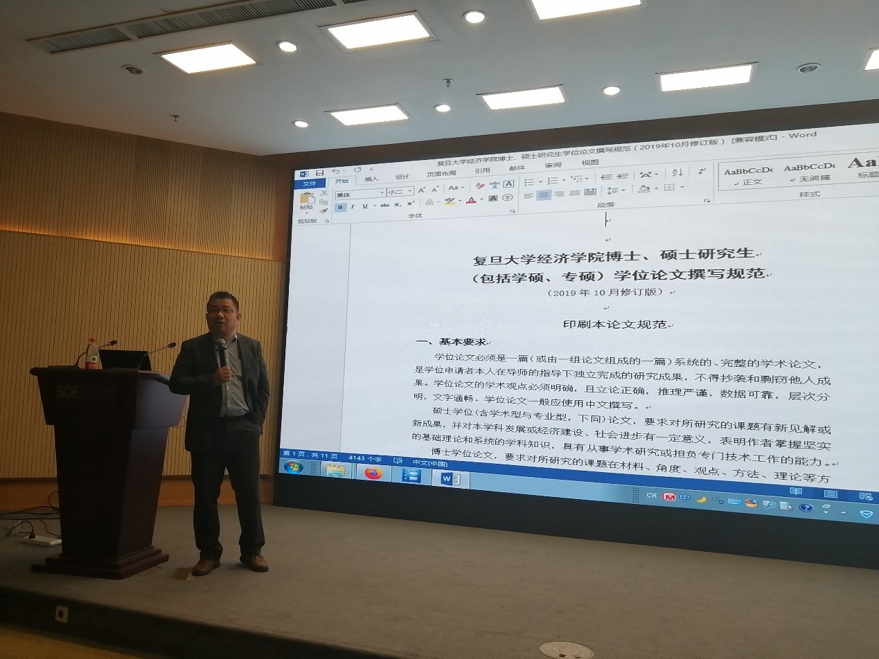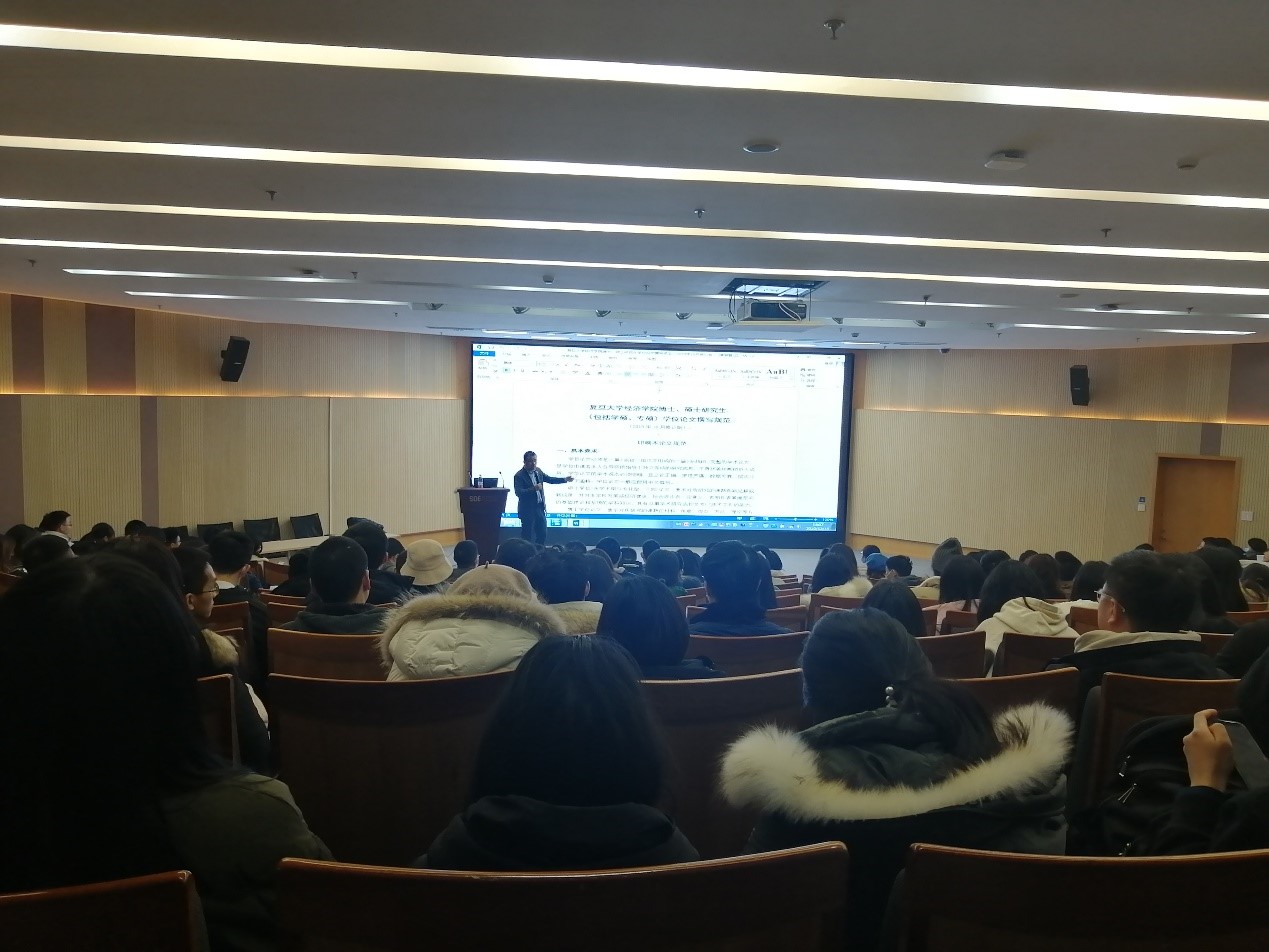 院长助理朱宏飞副教授为460余位应届博士生、学硕以及专硕讲授论文的写作要求和规范。由于场地限制,讲座分两场进行,朱老师言语幽默,现场气氛热烈,笑声连连。