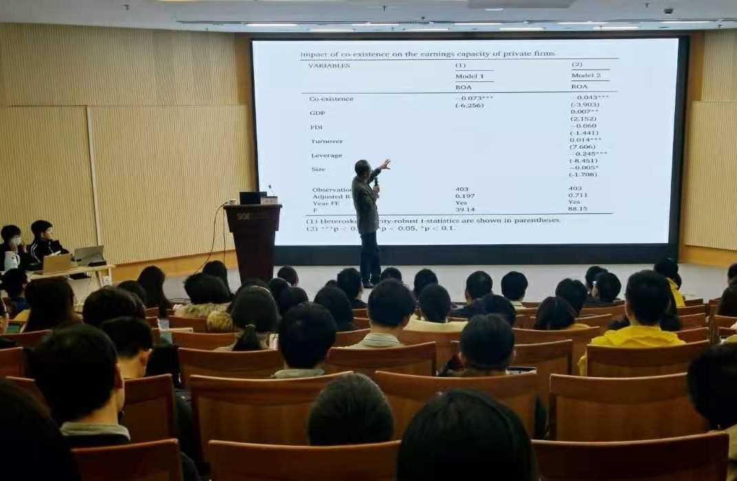 本次演讲为同学们厘清了中国经济发展的特征、机理和模式,也指出了正在面临的挑战和改革的方向,讲座内容学术性强,但深入浅出,引人深思。在讲座的互动环节,张军教授耐心回答了在场师生们的踊跃提问,使整个讲座达到了高潮。