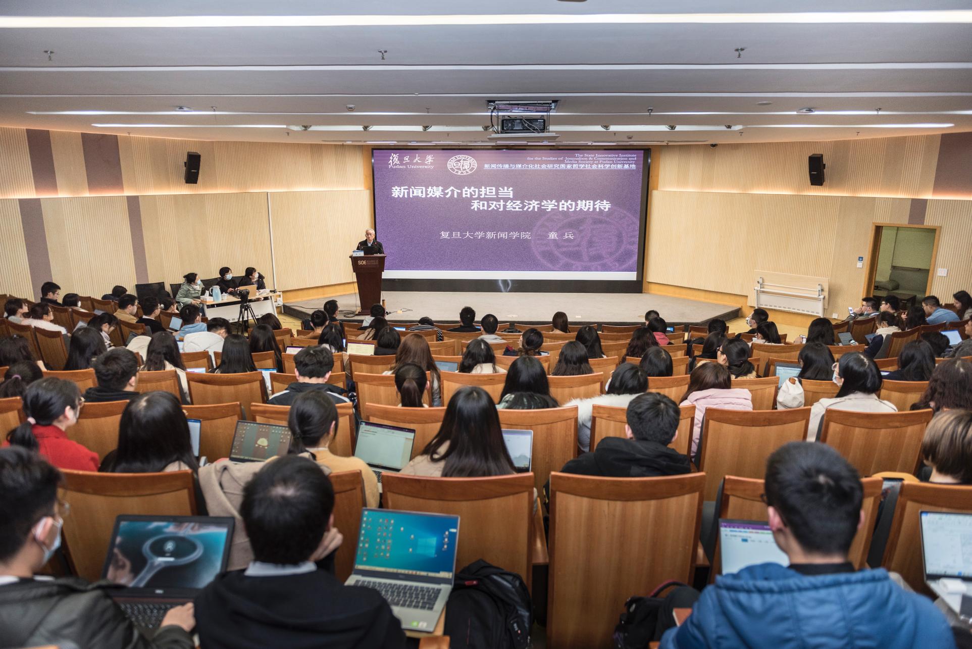 本次演讲内容丰富详实、引人深思,童兵教授妙语连珠、幽默风趣,学生们在整场讲座中也表现出非常高的积极性和参与度。在讲座的提问环节,童教授回答了在场师生们的踊跃提问,他鼓励在座的同学们去研究经济和新闻的交叉发展方面,对此能有所突破、有所创新、有所贡献。